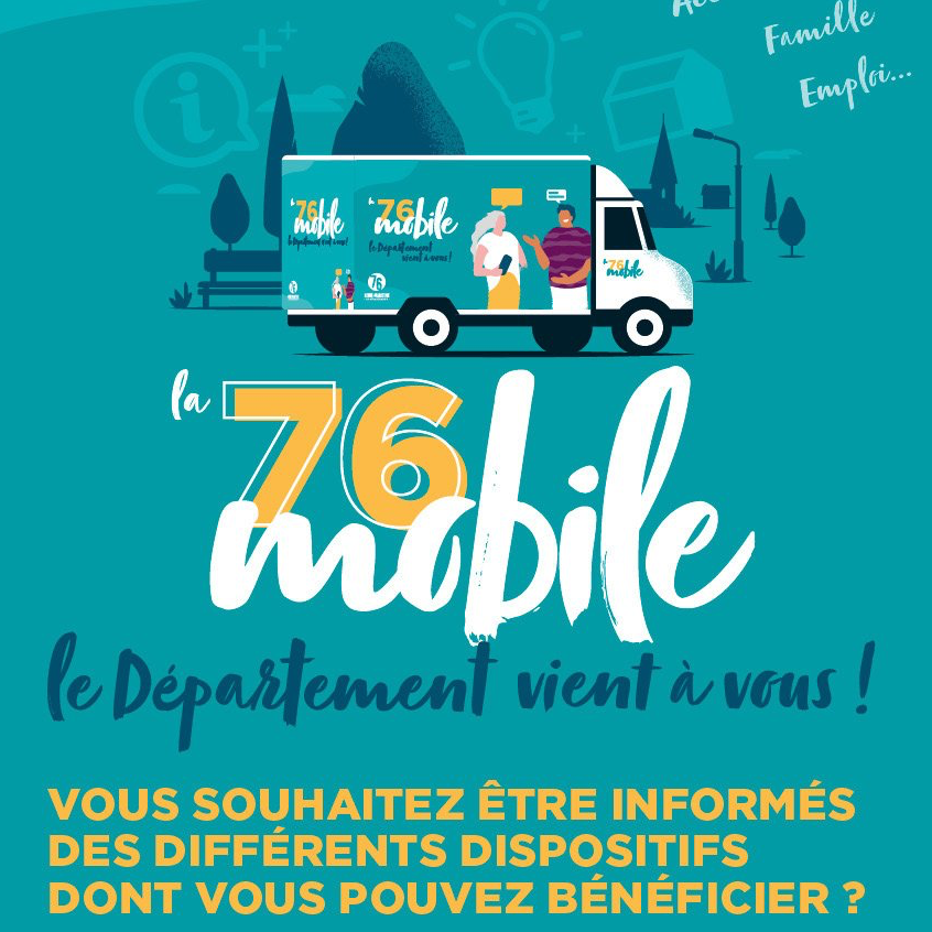 La 76 mobile est un dispositif départemental itinérant ayant à son bord plusieurs professionnels : assistante de service social, secrétaire médico-sociale et conseiller numérique.
